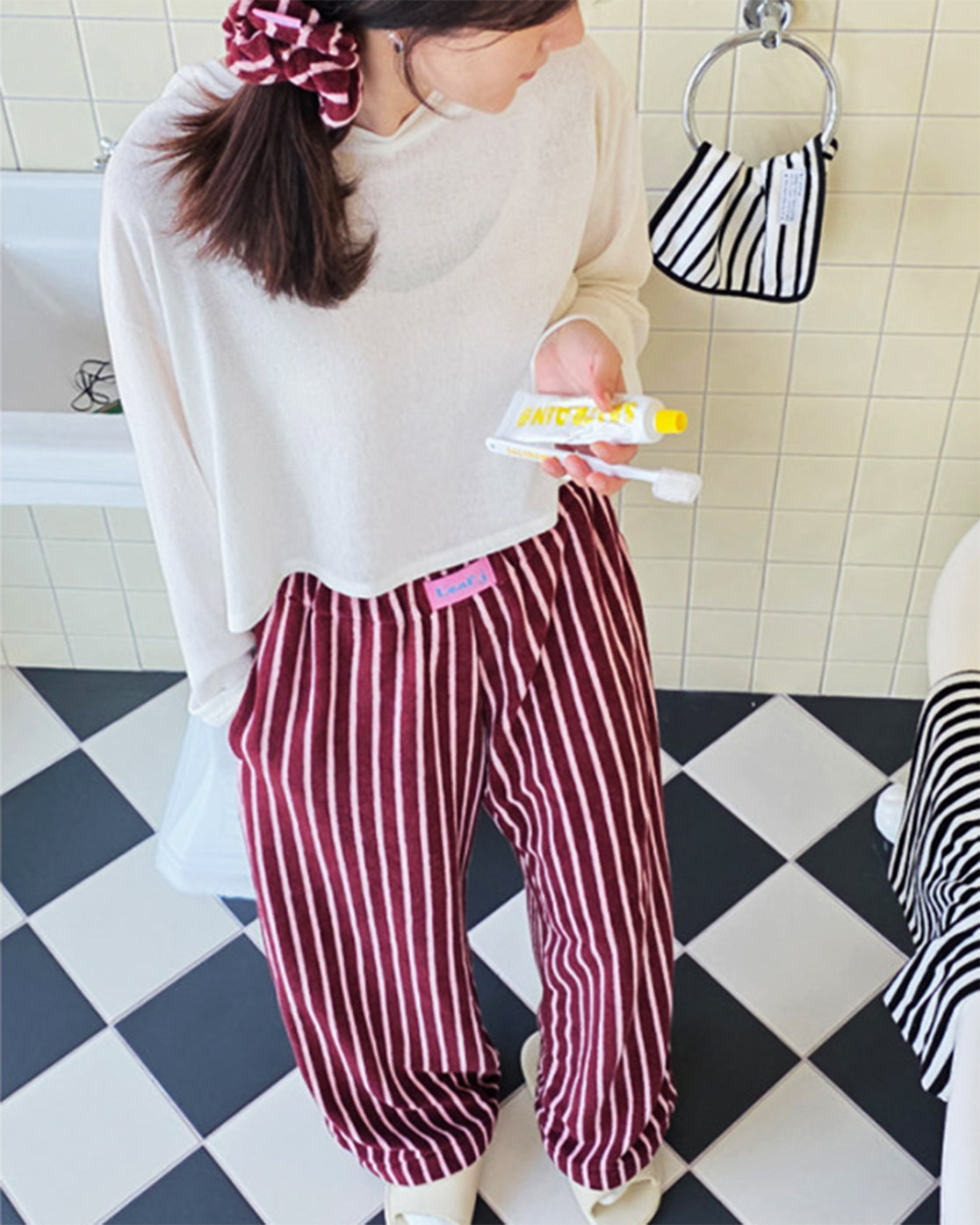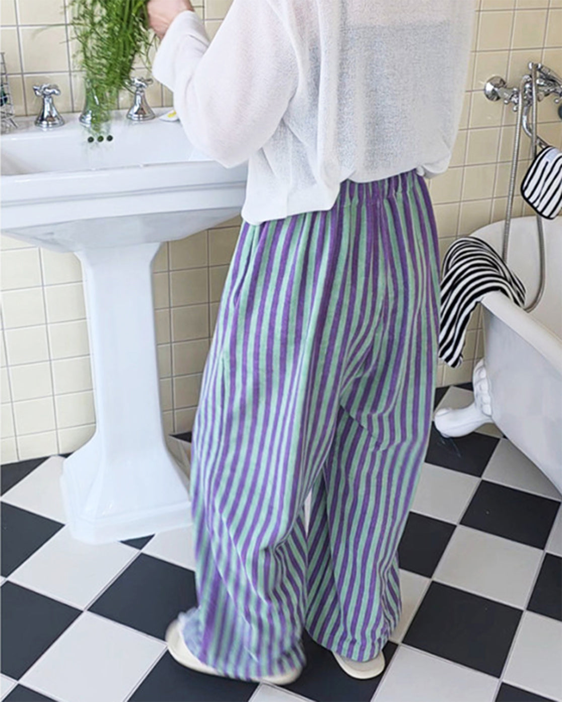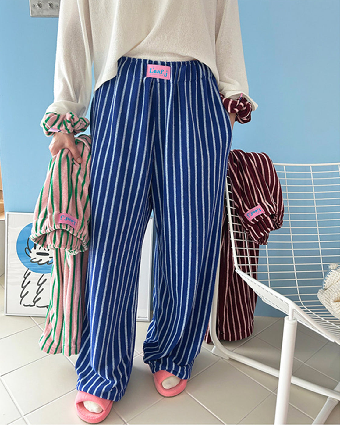 LEAF_J Terry ストライプ ルーズフィット スリープパンツ(ユニセックス/FREE)
