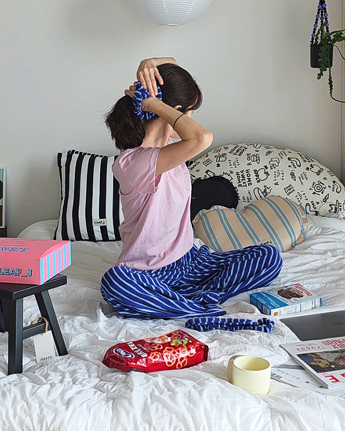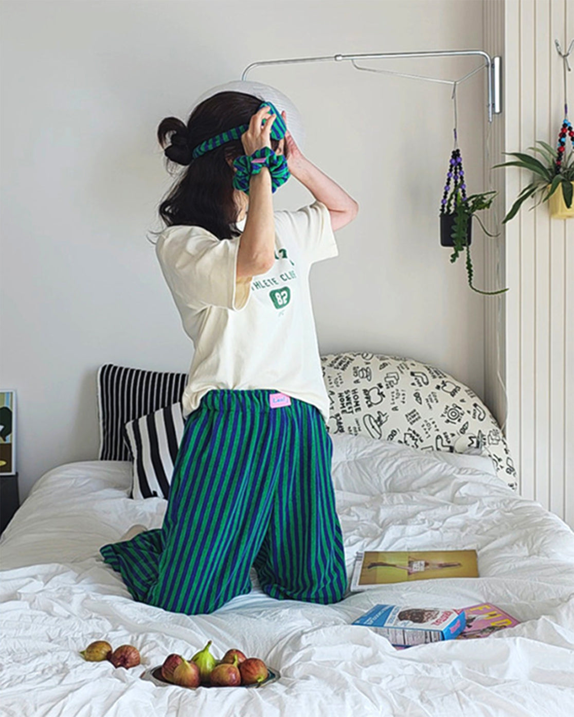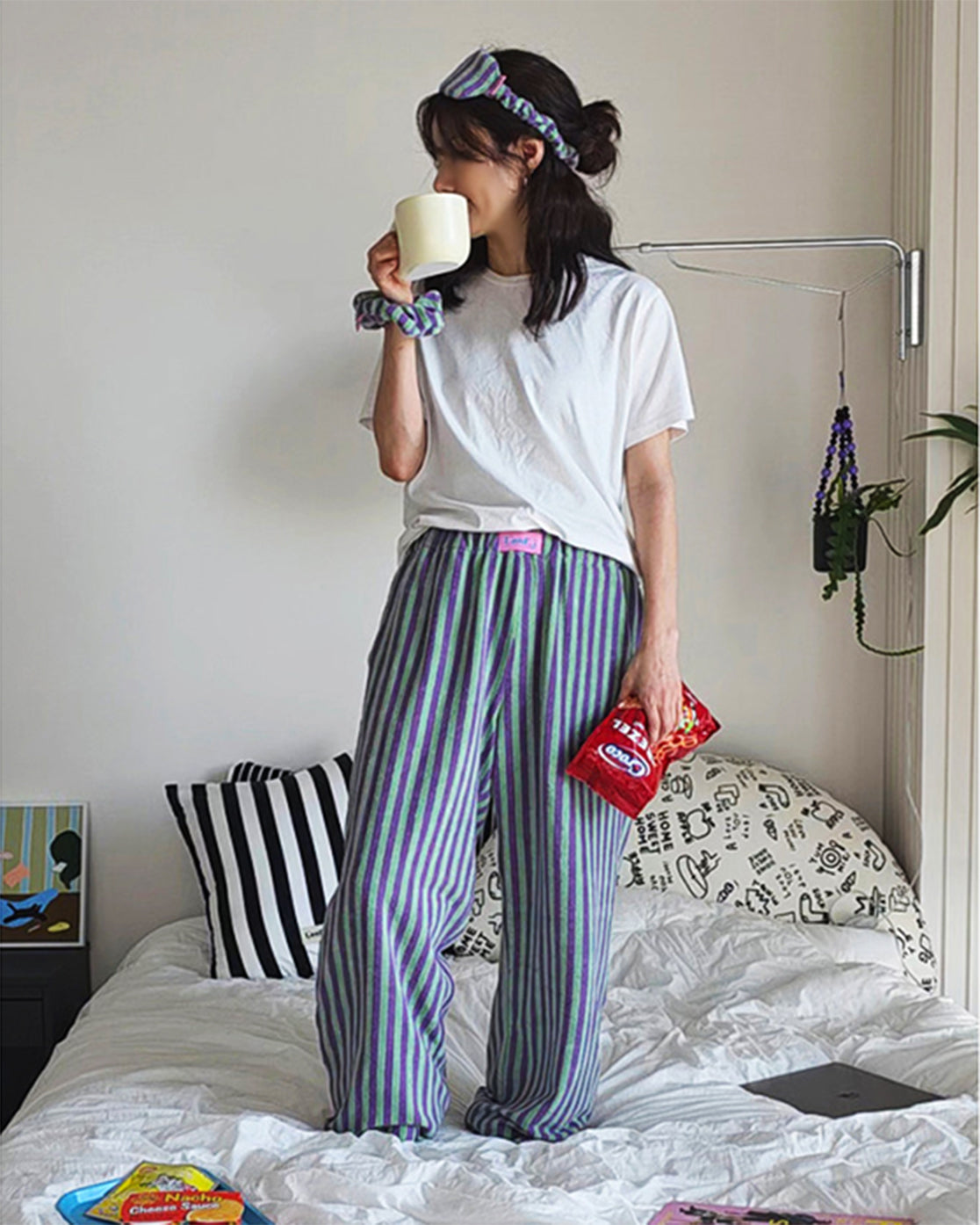 LEAF_J Terry ストライプ ルーズフィット スリープパンツ(ユニセックス/FREE)