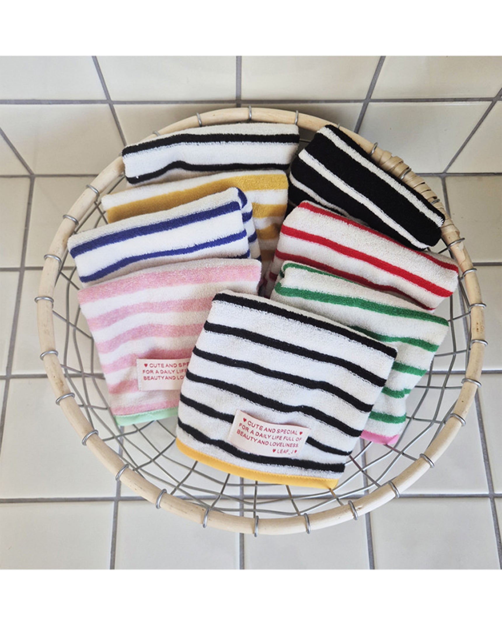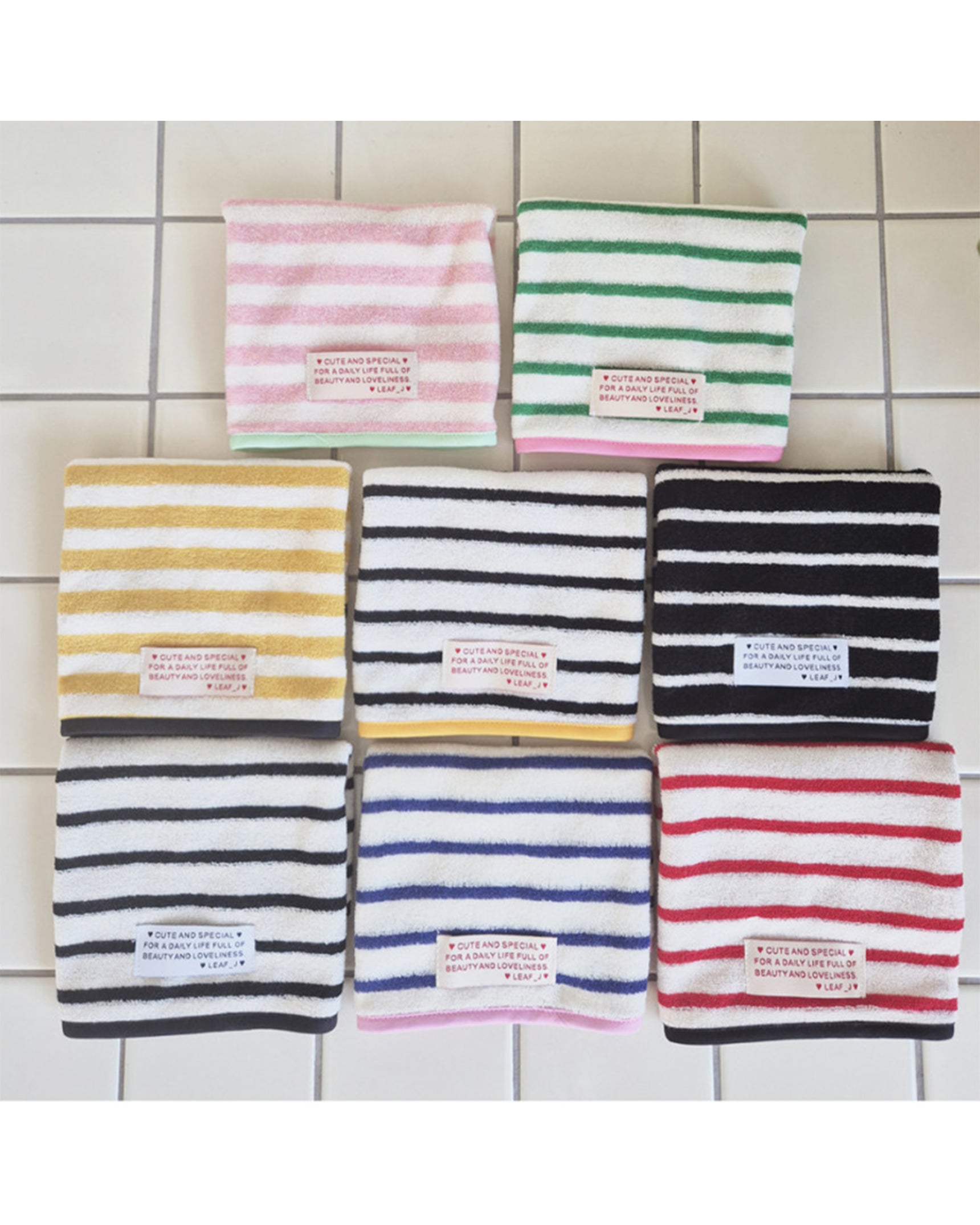 LEAF_J Daily Color ストライプ ハンドタオル(コットン・吸水速乾)