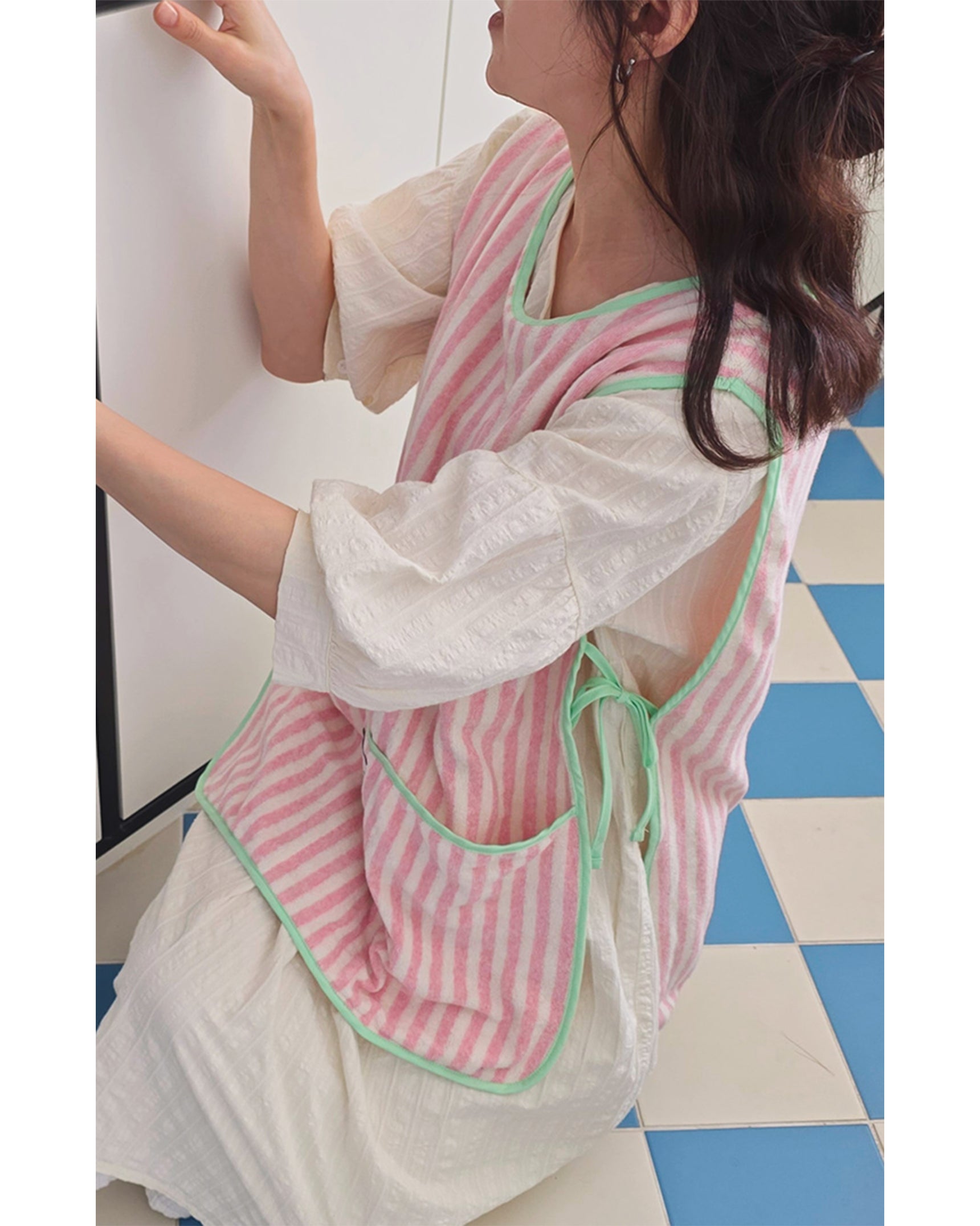 LEAF_J Terry Cotton ストライプ ベストエプロン