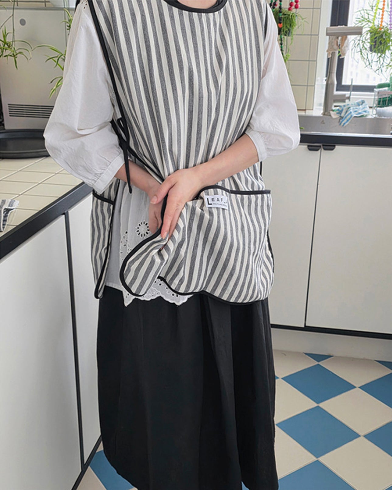 LEAF_J【防水×リバーシブル】ストライプ ベストエプロン 4color